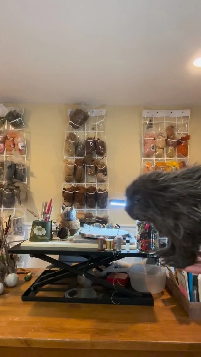 This charming life-size needlefelted piping plover is nesting in a quahog shell with an wool egg tucked safely beneath her wing.